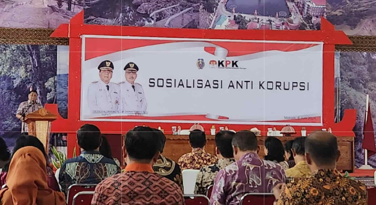 MAKALE, – Peningkatan literasi dan pengetahuan anti karupsi, Pemkab Tana Toraja bekerjasama dengan Deputy Pendidikan dan Peran Serta Masyarakat KPK RI gelar sosialisasi, Kamis 5 Juni 2024 di gedung Tammuan Mali’ Makale.