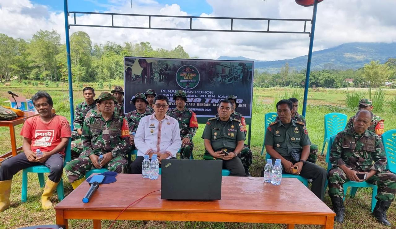 RANTEPAO, – Wakil bupati Toraja Utara Frederik Victor Palimbong hadiri kegiatan penanaman pohon dalam rangka Hari Juang TNI AD tahun 2023 di Tallung lipu,Toraja Utara Kamis 14 Desember 2023.