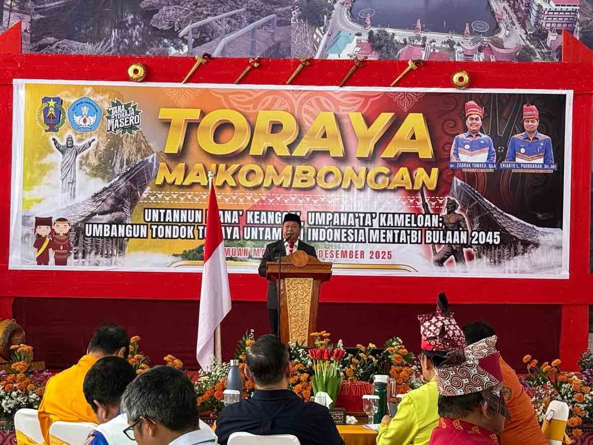 MAKALE, – Bupati Mamasa Welem Sambolangi hadiri acara pembukaan Toraya Ma’ Kombongan 2025 , 16 – 18 Desember di Tammuan Mali’ Makale. Welem membawa pesan pengakuan luhur sekaligus menitipkan harapan dari warga dan lembaga masyarakat adat Mamasa.
