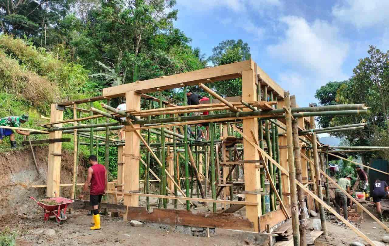 ” Sloof atas merupakan topangan Sebelum pemasangan reng dan usuk sehingga disiapkan untuk membuat besi sloof sehingga pemasangan atap menjadi kokoh,” jelas Sertu Petrus.