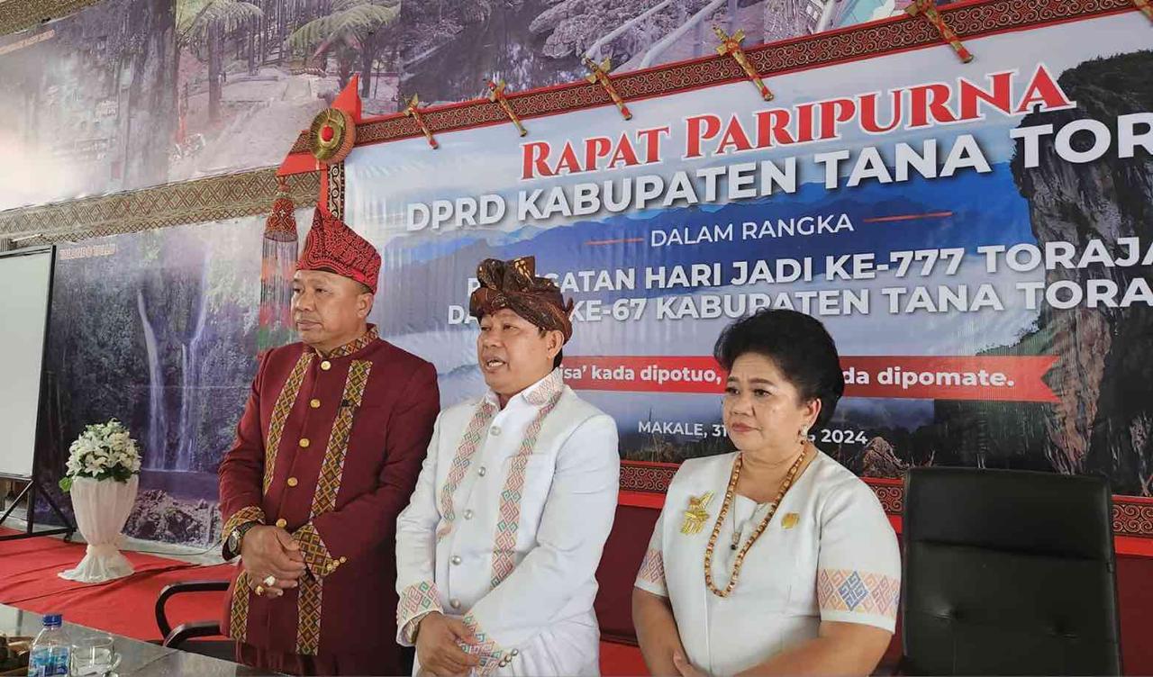 MAKALE, – Pimpin sidang paripurna DPRD Tana Toraja dalam peringatan HUT Kabupaten Tana Toraja ke 67 dan hari Jadi Toraja ke 777 bersama Evivana Rombedatu S.Pd,MM, Yohanis Linthin Paembonan S.Th. MM merasakan sebagai sebuah momen sukacita.